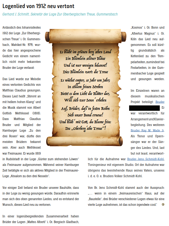 Dieser Artikel ist dem INFOBRIEF DES DISTRIKTS NRW, Ausgabe 11 / Juli 2025 – Seite 8 entnommen worden. Impressum des Infobriefs des Distrikts NRW: Herausgeber: Distrikt Nordrhein-Westfalen der Großloge der…